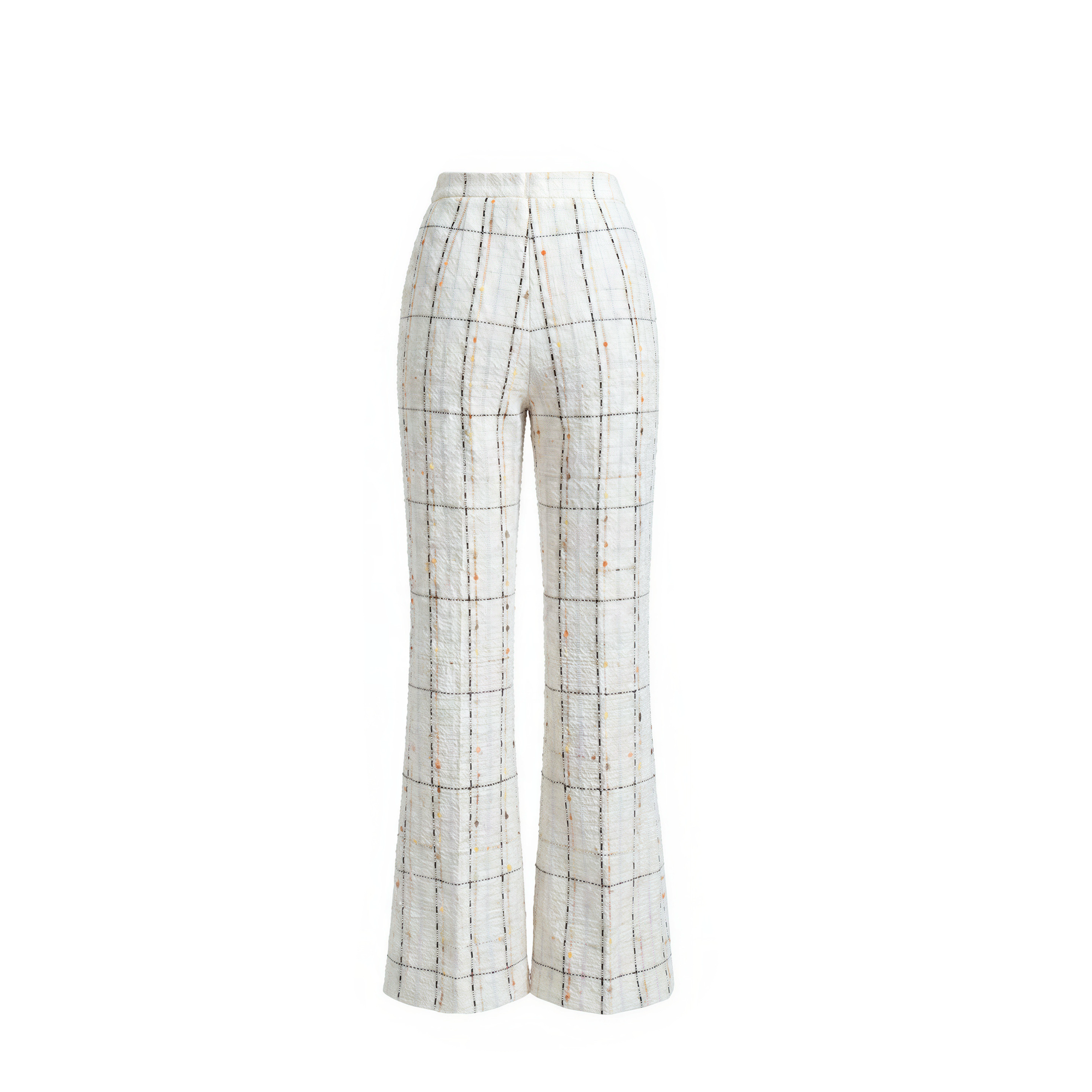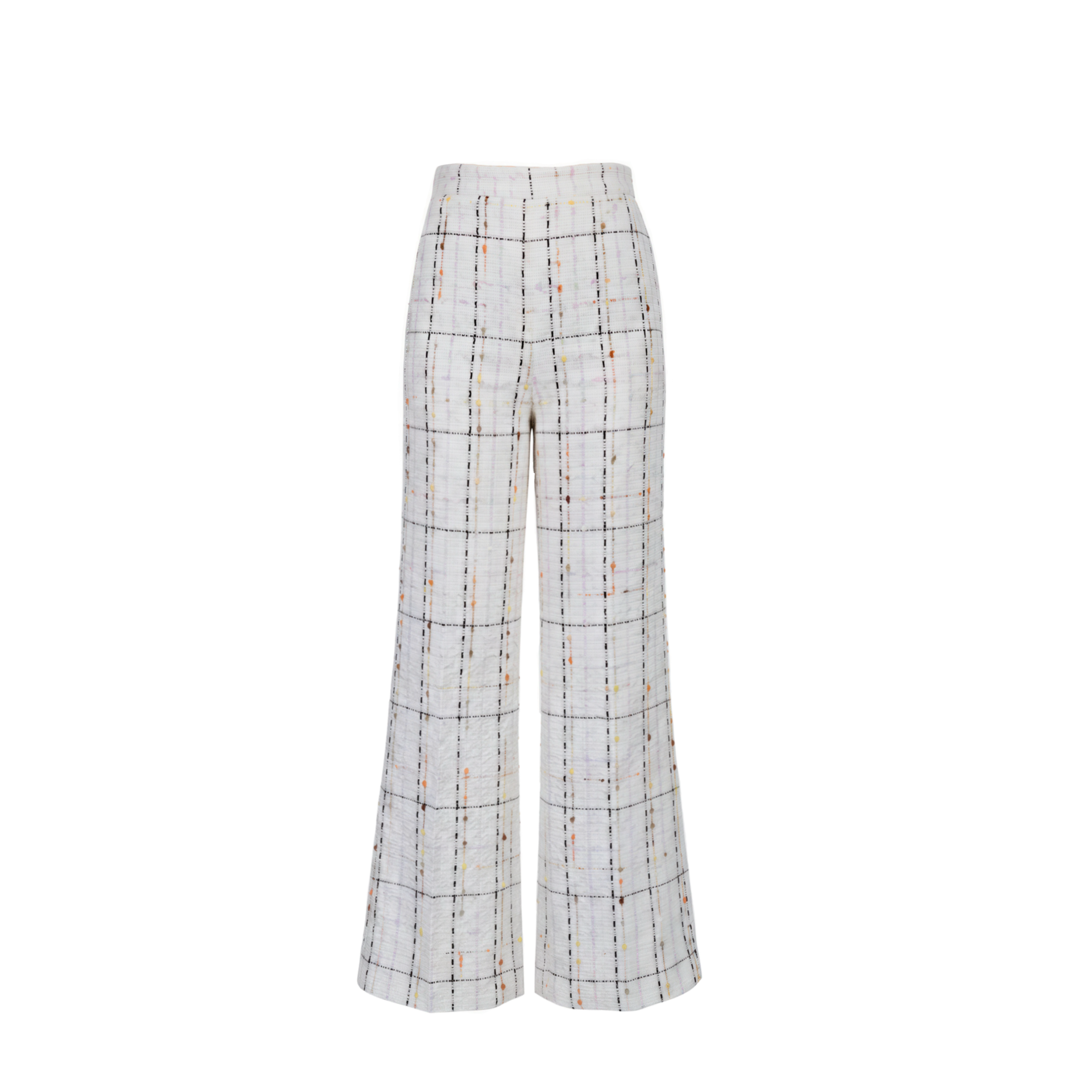 Part of The Cami Suit, these wide-leg trousers are designed to balance tailored structure with effortless movement. The textured plaid tweed adds subtle depth and light while maintaining a fluid silhouette. Crafted in limited quantities.